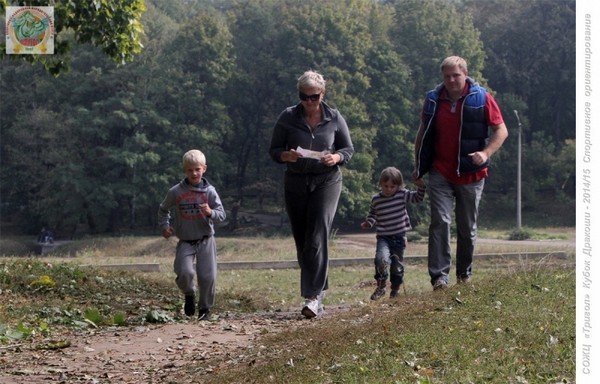 …А вже за мить, отримавши від головного судді бенефісу, арбітра національної категорії Валерія Заєрка благословення, а також необхідні технічні пристрої – чіпи, – орієнтувальники вирушили на дистанцію, яку їм необхідно було подолати якомога швидше та ще й зареєструватись на шести контрольних пунктах. Не обійшлось, ясна річ, і без пригод. Дружина відомого дніпропетровського письменника і журналіста, краєзнавця і подорожнього Бориса Ковтанюка – Людмила щось там наплутала на трасі (уперше ж бо триголові «спроектували» нову для себе дисципліну!), проминула одну з таких «відправних точок», за що й отримала від Феміди червону картку.
