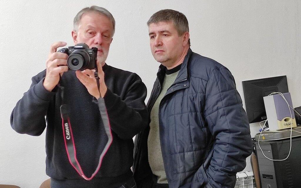 Досвідчений фотограф Віктор Качанов (зліва) демонструє можливості нової фотокамери