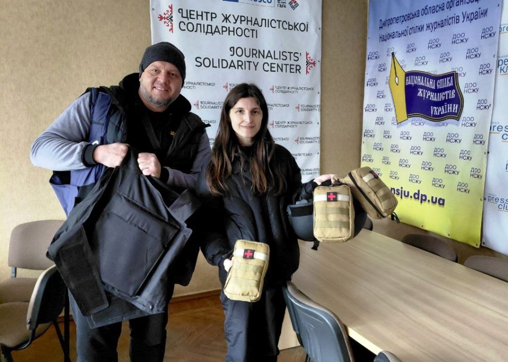 Нагадуємо, що Дніпровський центр журналістської солідарності НСЖУ, як і вся Мережа Центрів, надає журналістам у тимчасове користування якісне захисне спорядження – брендований написом PRESS бронежилет із шоломом, тактичну аптечку. Прокат безкоштовний, але обов’язково за наявності акредитації ЗСУ.