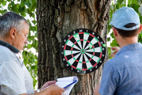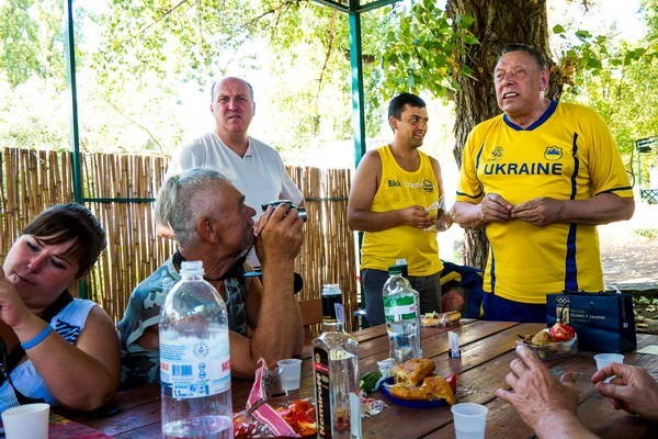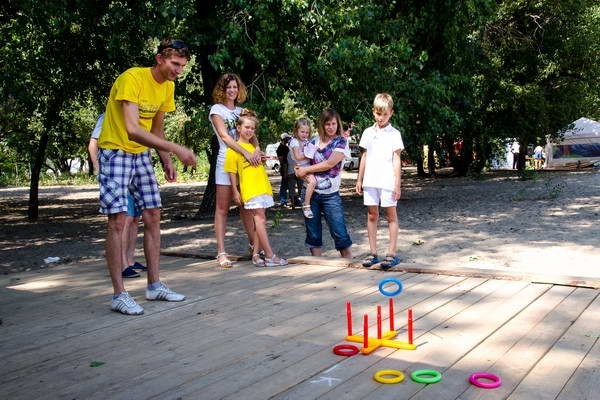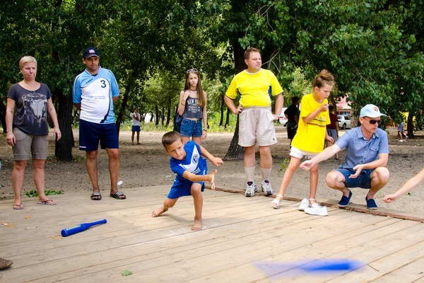 Зважаючи на спеку, інші організаційні «підводні течії», реферівська бригада першою почала приймати іспити у більш численної (десять родин!) молодшої половини, по черзі «вмонтовуючи» усі трійці у обруч і запускаючи ті на драконівську «орбіту». Подолати на швидкість піщану дистанцію, «вимережену» фішками, які ще й потрібно було оббігти змійкою, це вам, шановні, навіть не дротики метати! Одні триєдині команди із завданням справлялись більш-менш гідно, іншим же ця суддівська затія – бути такими собі хвилерізами у «бурханах»! – ох як нелегко далась! Зрештою, найвіртуознішим у своєрідному «раллі» виявився третій «підряд» газети «Частный предприниматель» (родина Одинцових), на якусь дещицю секунд випередивши фамільний «дрім-тім» голови спостережної ради газети «Зоря» Сергія Чернявського. Не знижували зорянці темпу і у трьох наступних дисциплінах – кеглях, дартсі і кільцекиді, де стали третіми, першими і другими, а от далі у «зорянському механізмі» щось не залагодилось, що, зрештою, й коштувало їм чемпіонського лаврового віночка. Набравши у сумі 26 балів, Чернявський і Ко лише єдиним пунктом поступились 34-ому телеканалу і «Драконівській Пекельній Кухні», розділивши третю-четверту позицію із 51-м телеканалом, за традицією репрезентованим Дмитром Тимохіним та його неймовірним «фізкультурно-спортивним легіоном». Уявіть собі: лише цього року на триголівській толоці вже демонстрували свій вишкіл тринадцятирічний Ярослав, семирічний Кирило і чотирирічна Емілія! І цей потенціал родина Тимохіних, здається, ще далеко не вичерпала!