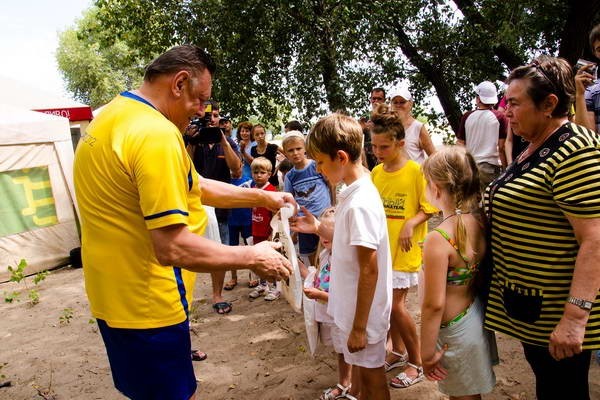Вже й так добряче заповнене «обійстя» вогнедишних потихеньку поповнюється все новими й новими раритетами, неординарними спільниками-одновірцями, творчими колективами, готовими підставити Триголовим Драконам своє плече у підготовці чергових фірмових «форумів» і «симпозіумів». Одним з таких формувань напередодні проведення Драконівських веселих сімейних стартів стало обласне відділення Національного олімпійського комітету, очолюваного народним депутатом України Андрієм Павелком та Олександром Дювбаковим. Саме з їхньої «легкої» руки на Придніпров`ї було започатковано неординарний проект «Олімпійське літо Дніпра», епіцентром якого став Комсомольський острів обласного центру. На піщаному «ристалищі» у рамках вище згаданого заходу вже пройшли обкатку футболісти-пляжники, віртуози «крилатого» і овального м`яча, дзюдоїсти, борці, представники інших спортових підрозділів. 16 серпня до «Олімпійського літа Дніпра» приєднались і триголівці, оперативно передислокувавши свій бенефіс із сільської глибинки (спершу планувалось зібрати родини на Магдалинівщині) до мегаполісу. І, варто зазначити, аж ніскілечки не прогадали!