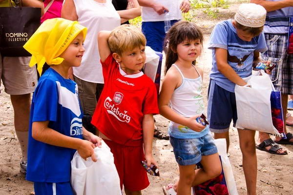 Перш ніж головний суддя змагань, арбітр національної категорії Юрій Білоус, «розфасувавши» учасників перегонів на дві вікові категорії (хлопчики і дівчатка 6-10 та 11-13 років), запропонував потенційним олімпіонікам свій «дебютний» делікатес – біг у обручі, уся доросла і тінейджерська рать зібралась у затінку, біля імпровізованого подіуму, на невеличкий церемоніал відкриття змагань, родзинкою якого стала чергова акція натхненників малої журналістської олімпіади – «Долонька на серці». Під час виконання Гімну України, уся малеча (а в цій когорті симпатиків здорового способу життя були навіть три-чотирирічні малюки!), виокремившись у таку собі «маленьку зграю» (згадайте Юрія Шевчука!), поклала свої крихітні долоньки (як потім образно дала їм – долонькам – визначення лідер «Драконівської Пекельної Кухні» Надія Поденко – «крабики») на серце. Це, дійсно, потрібно було бачити! Стояло майбутнє нашої неньки-України з «крабиками» на серці і, повірте мені, ця мить дорогого коштує!