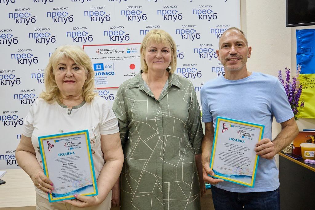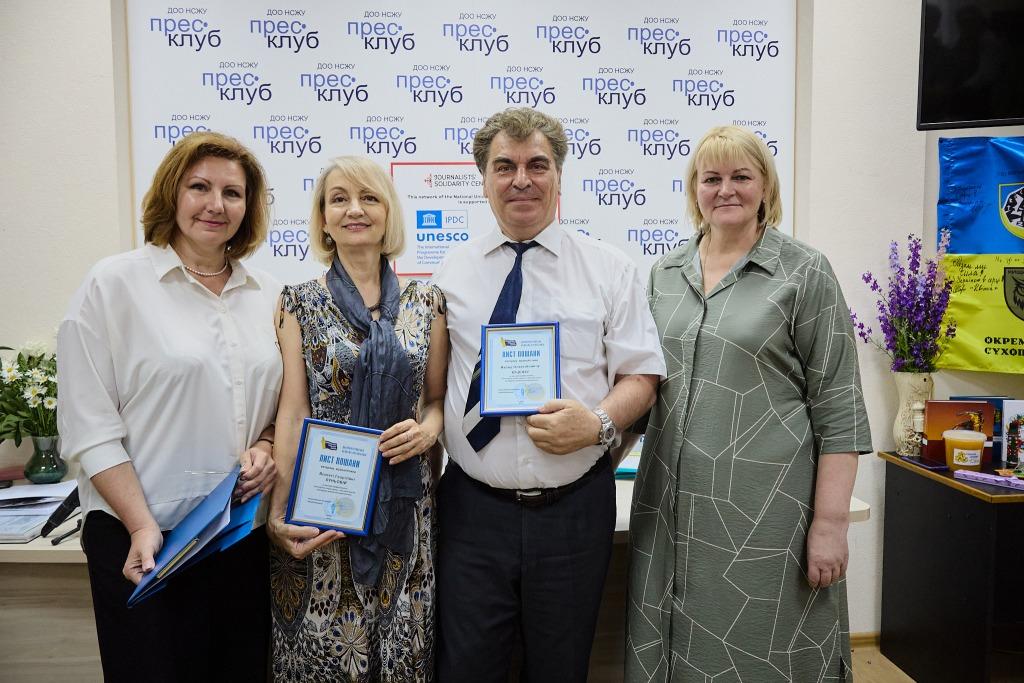 За високий професіоналізм, вагомий внесок у розвиток української журналістики, відстоювання демократичних ідеалів та свободи слова, захист інформаційного простору в часи російсько-української війни Подяку від голови Національної спілки журналістів України Сергія Томіленка отримали: