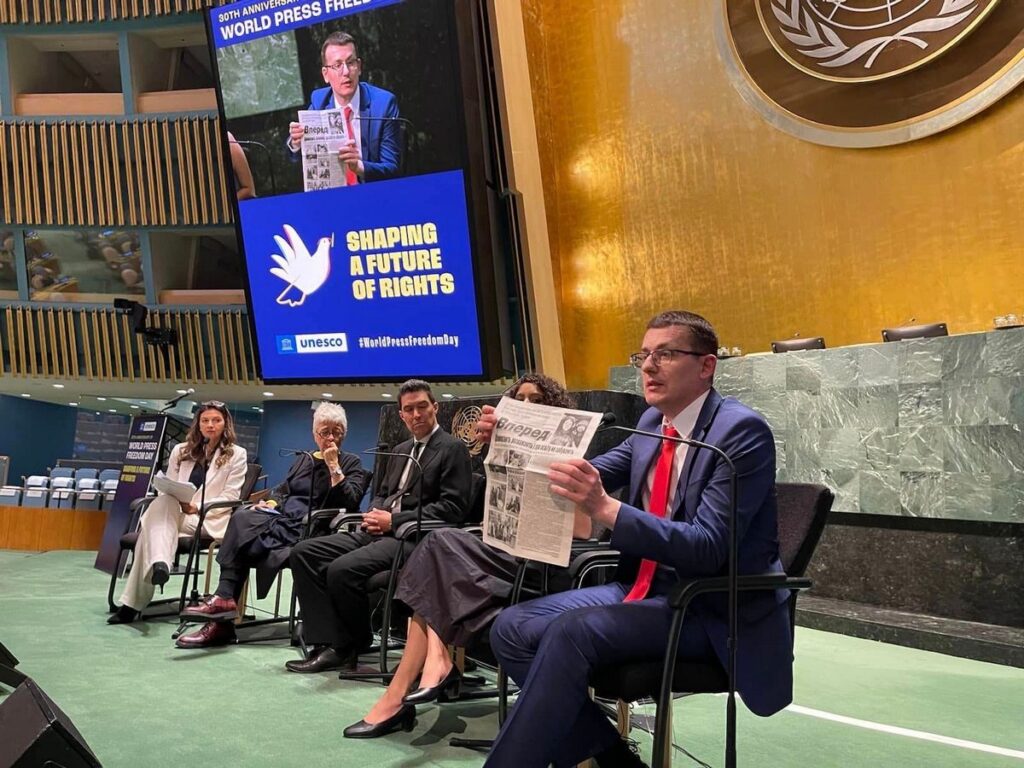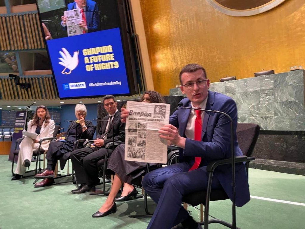 Як повідомляє інформаційна служба НСЖУ, з нагоди Всесвітнього дня свободи преси на запрошення штаб-квартири ЮНЕСКО очільник Спілки перебуває в Нью-Йорку. У соціальній мережі він написав, що для нього було надзвичайно почесно на майданчику Генасамблеї ООН закликати світ підтримувати Україну та українських журналістів, поінформувати світову аудиторію про розслідування воєнних злочинів Росії та наголосити на необхідності бойкоту і притягнення до відповідальності російських пропагандистів.