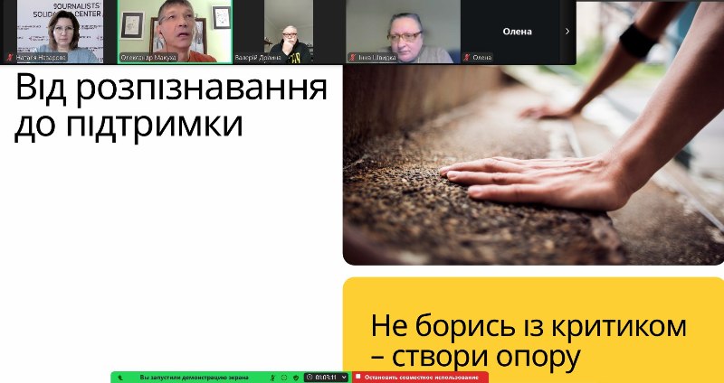 На завершення учасники поділилися своїми підсумками: хтось відзначив, що вперше побачив свого критика «з боку», хтось відчув полегшення після вправи з підтримкою, а хтось зрозумів, що внутрішній голос, який раніше здавався абсолютною правдою, насправді можна поставити під сумнів.