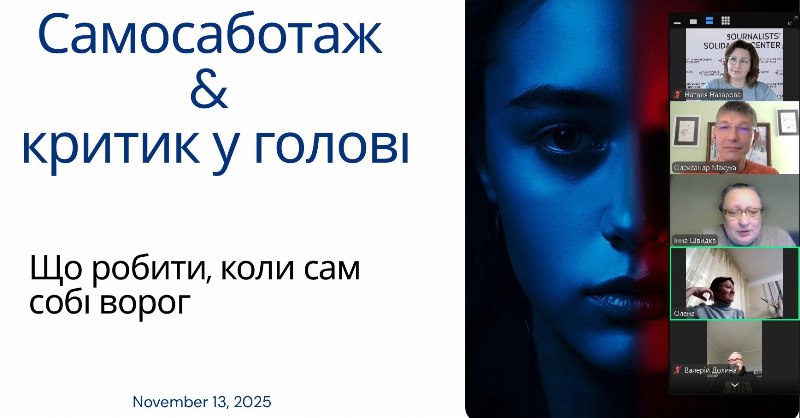 Іноді наш головний критик – це ми самі. Про те, як його розпізнати, зрозуміти і перетворити на союзника, говорили під час онлайн-тренінгу «Самосаботаж і критик у голові: що робити, коли сам собі ворог», який провів Дніпровський центр журналістської солідарності НСЖУ для медійників.