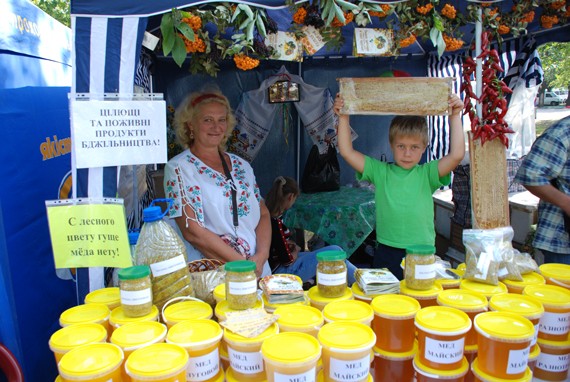Натуральний мед, кількість і різноманіття якого просто вражали, квітковий пилок, маточне молочко, прополіс, медові напої, коржі та тістечка – усе це гості свята могли придбати безпосередньо у пасічників, вбраних у нарядні українські вишиванки. Більшість продавців – знатні бджолярі, які займаються цією справою цілими родинами.
