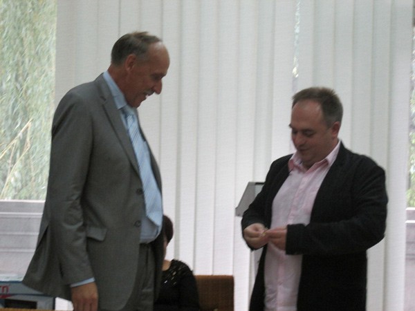 Голова правління обласної журналістської організації Олексій Ковальчук привітав колектив «Позиции» з ювілеєм, побажав міцного здоров’я, натхнення, сміливих задумів, вагомих здобутків та вручив заслужені відзнаки. Так, за вагомий внесок у розбудову української журналістики та з нагоди 25-річчя газети Почесний знак Національної спілки журналістів України отримав керівник прес-центру Дніпропетровського обласного об’єднання профспілок Віктор Коврига. Грамотою обласної журналістської організації була відзначена Марина Михайлівна Ковтун, головний редактор газети, а Почесними грамотами НСЖУ – ветеран журналістики Дніпропетровської області, спеціаліст обкому профспілки Вадим Павлович Обуховський та редакційний колектив. «Хай творчий шлях для «Позиции» буде багатим на добрі новини, цікаві матеріали та незабутні зустрічі», – сказав Олексій Семенович.