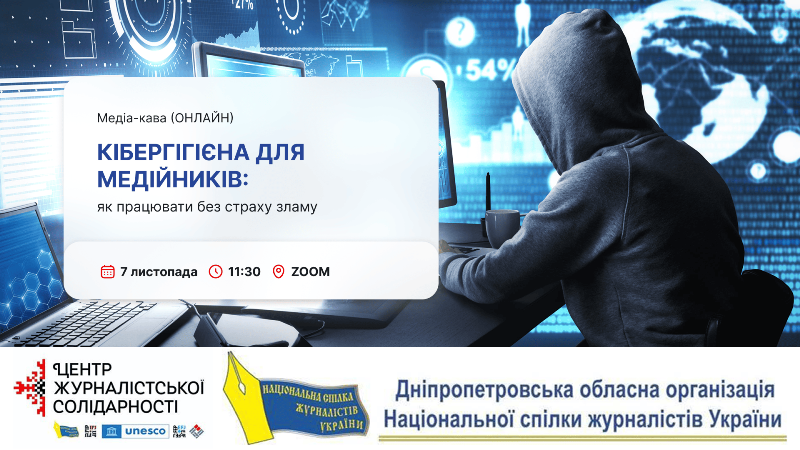 Дніпровський центр журналістської солідарності НСЖУ запрошує медійників-практиків, журналістів, фрілансерів, а також студентів профільних вишів та викладачів на онлайн-зустріч на тему: «Кібергігієна для медійників: як працювати без страху зламу».