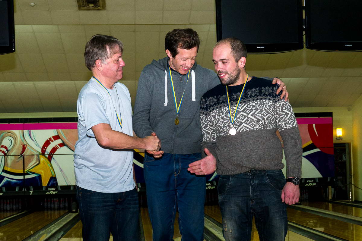 З`ясувавши, хто із «зібрань» є хто, придбавши собі класифікаційну «одежину» по фасону, учасники боулінгового «параду-але» перемістились на особисті «килимки», а їх, за традицією, було три – чоловічий, жіночий і дитячо-юнацький (останні теж не захотіли бути обділеними. І це цілком природно!). Честі продовжувати «бомбардування» удостоїлися, щоправда, не всі, а лише шістки-сімки кращих у кожній номінації. У представників сильної статі, як і очікувалося, солідний гандикап утримав Микола М`якшиков, на ціле тридцять одне очко у підсумку випередивши В. Качанова і на тридцять дев`ять О. Толоконникова, який у фінальній частині дещо «втихомирився», прогледівши ривок з-за спини спритного «підприємця». Міг Олександр пропустити поперед себе ще одного вельми вмілого «спринтера» – Дмитра Тимохіна з 51-го телеканалу, одначе, нажитого раніше капіталу для віншування йому усе ж вистачило. Інші фіналісти – «телетайпівець» Ігор Гусаров, Дмитро Куценко та Борис  Ковтонюк – за великим рахунком, переймалися виключно локальними задачами, принаймні, ще раз спробувати у себе у ролі таких собі метальників-фейєрверкерів – теж непогано, правда?