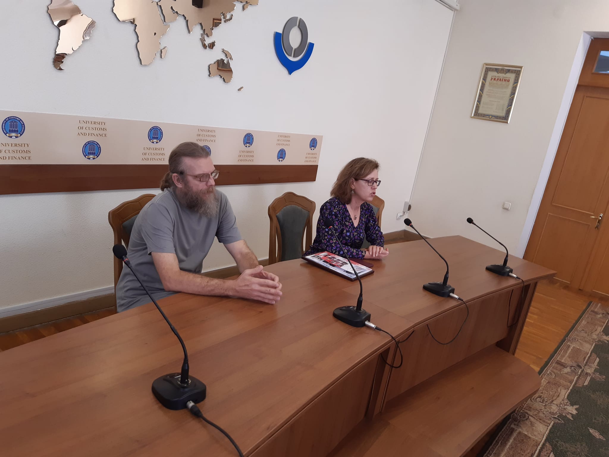 Опісля Ліна Кущ разом із журналістом із Донеччини Валентином Хорошуном відвідала Університет митної справи та фінансів.