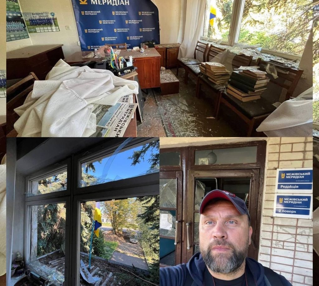 «Сьогодні вранці, 28 серпня, росіяни атакували будівлю редакції «Межівський меридіан» БПлА типу «Молнія»… Влучання було в редакторський кабінет…», – повідомив у фейсбуці головний редактор Євген Хрипун.