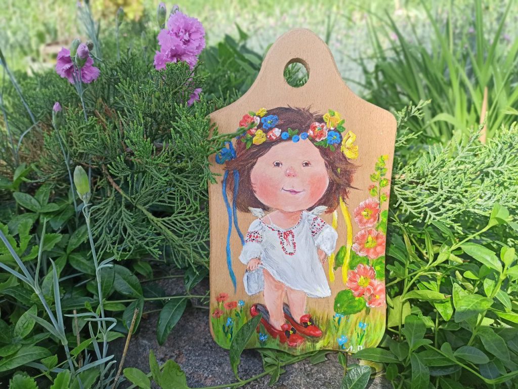 –У криничанській газеті «Нові рубежі» мама пропрацювала понад чверть століття, останні 12 років – головною редакторкою. А вже на заслуженому відпочинку захопилася малюванням. Спершу робила репродукції картин відомої української художниці Євгенії Гапчинської. З часом її «гапченята» стали відрізнятися від оригіналу – поглядом, сукнею, стрічкою у косах… Персонажі вбралися у вишиванки, бо це ж наші, українці! Із замовленнями почали звертатися друзі, знайомі, декому хотілося передати рідним за кордон оригінальний подарунок. Розписані дощечки «полетіли» до Франції, Америки, Італії, Канади, Іспанії, Німеччини… Принаймні, це ті країни, про які ми знаємо.