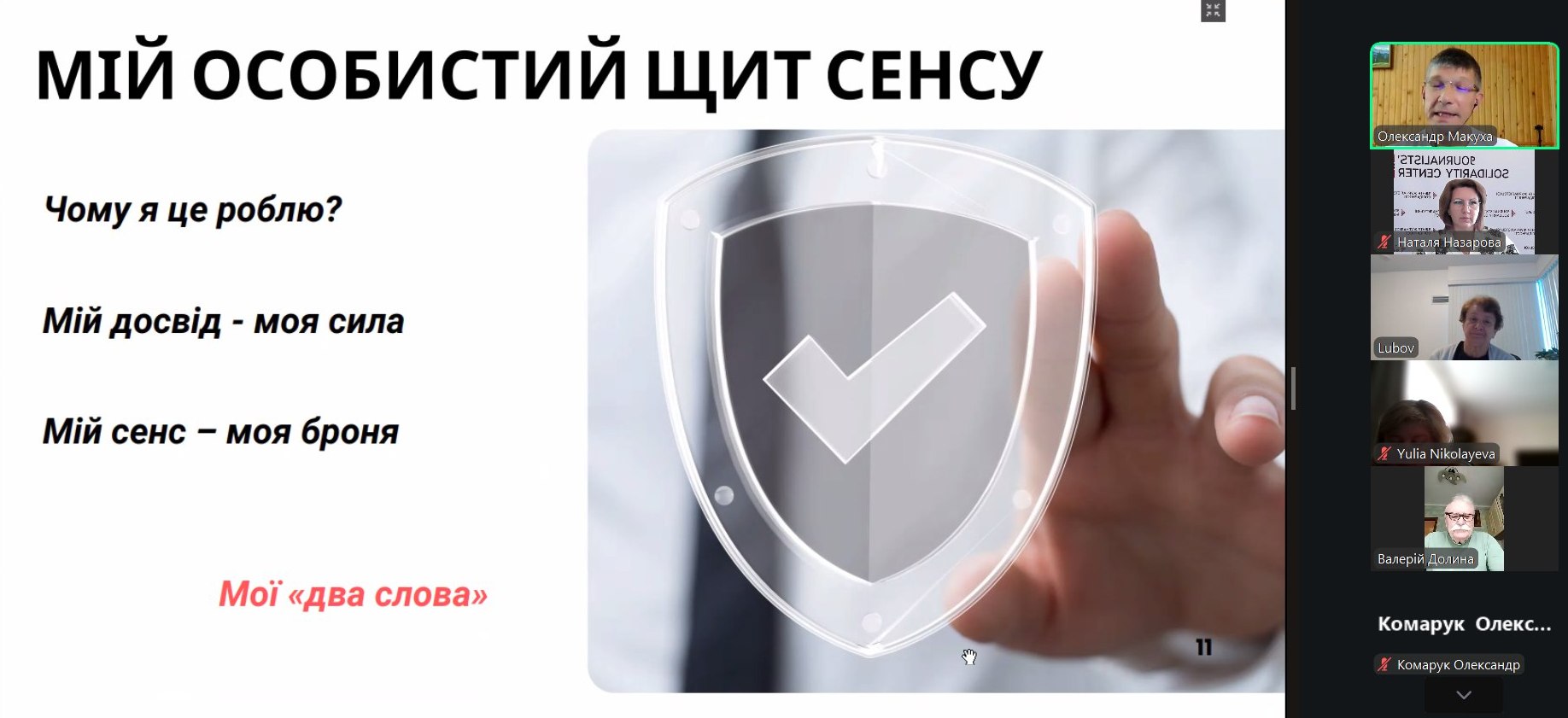 До розмови, за запрошенням Дніпровського центру журналістської солідарності НСЖУ, долучилися медійники Дніпропетровщини, Сумщини та Херсонщини. Разом із тренером ГО «ГОЛОС ПРО», психологом Олександром Макухою вони вчилися розпізнавати ознаки вторинної травматизації та шукали інструменти, які допомагають трансформувати переживання у джерело професійної стійкості.
