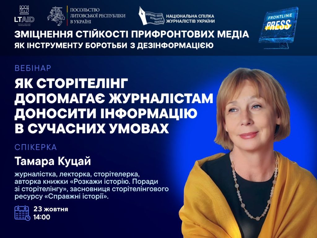 Вебінар організовано в межах проєкту «Зміцнення стійкості прифронтових медіа як інструменту боротьби з дезінформацією». Проєкт фінансується Посольством Литовської Республіки в Україні в рамках Програми Співробітництва з Метою Розвитку та Сприяння Демократії.